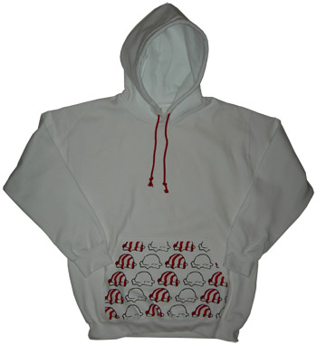 Limited edition artwork screen printed by hand a white 50/50% cotton polyblend hoodie.
