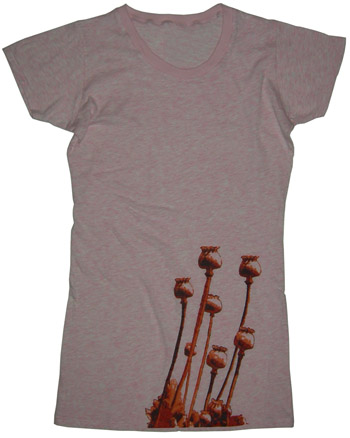 Limited edition artwork printed by hand on a long heather pink 100% cotton
